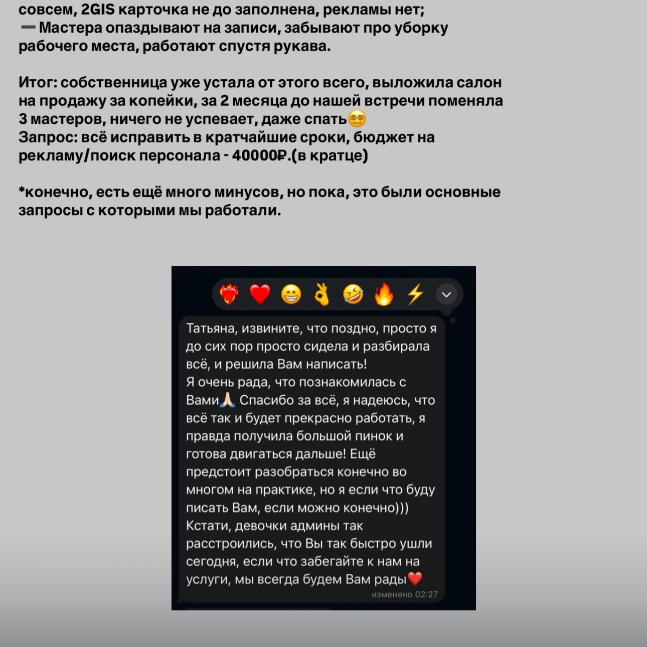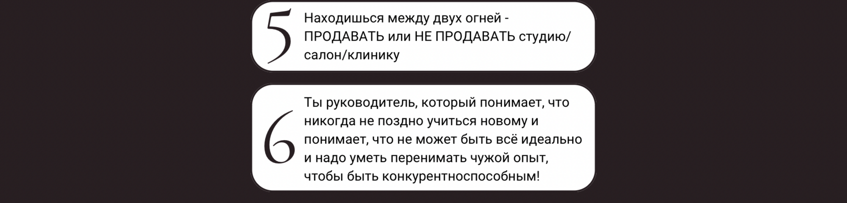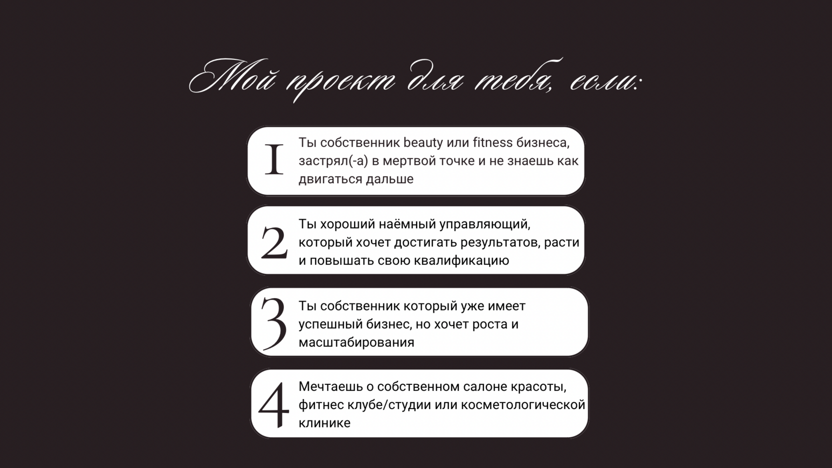 Хоть и в большинстве случаев ко мне обращаются с одними и теми же запросами, я стараюсь индивидуально и комплексно бороться с каждой проблемой, в зависимости от принципов/желаний/трудностей/целей каждого собственника бизнеса в отдельности, который ко мне обращается. Со мной, Вы точно и верно движетесь к цели, ведь МЫ делаем ОБЩЕЕ ДЕЛО!